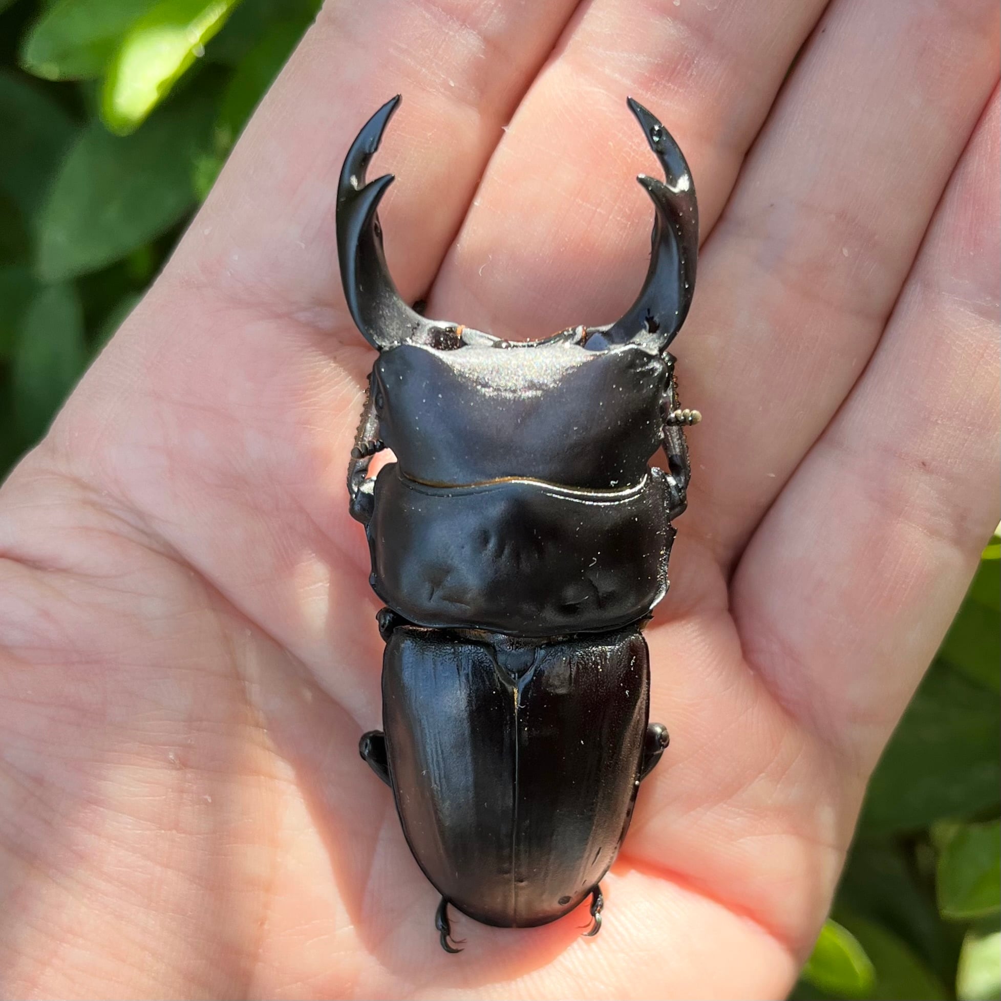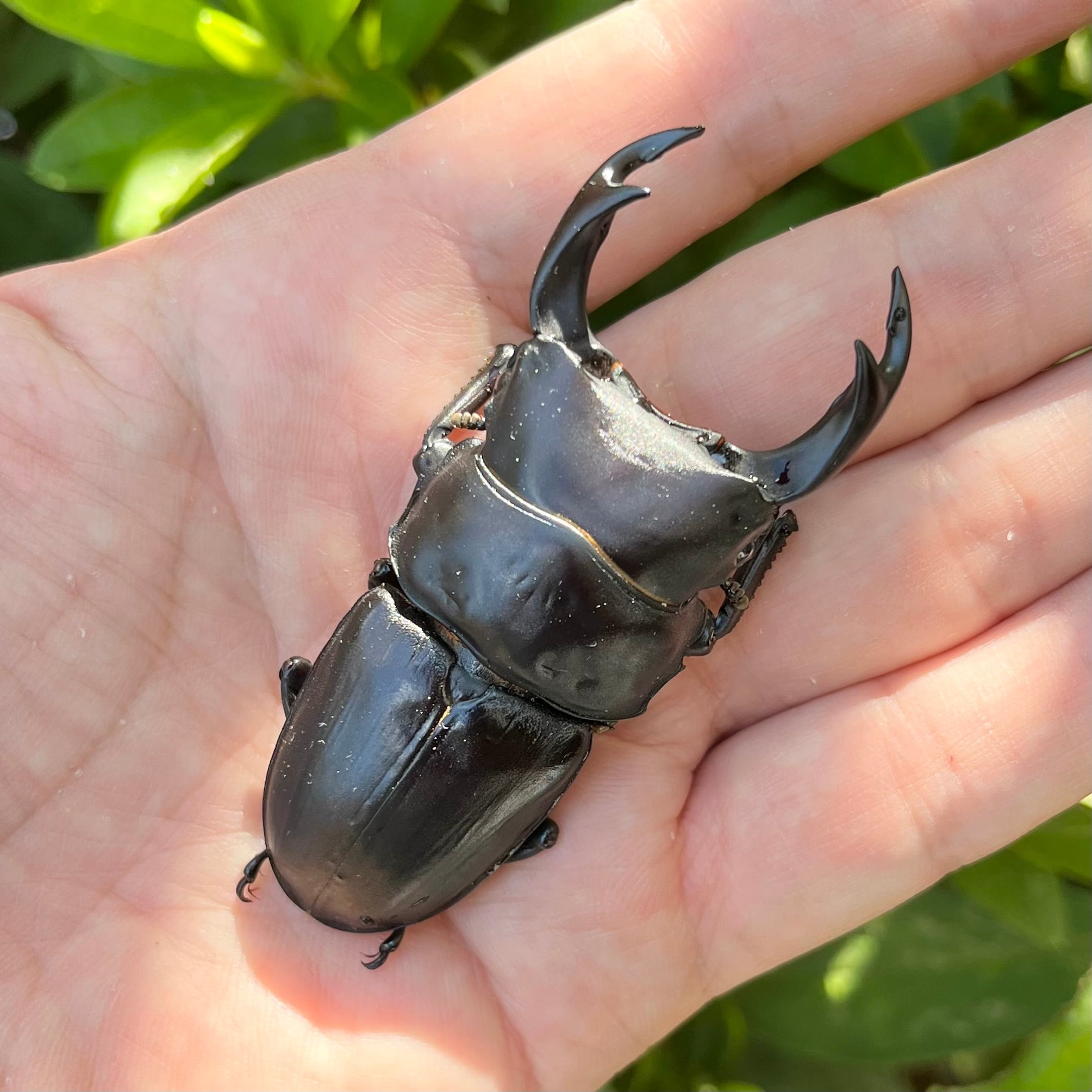 懇意にしている採集家の方が2021年2021年3月2日12:30頃にクヌギの切り株から3令で採集し、2021年6月に羽化した♂73.0mmと2020年10月28日9:30頃にクヌギの部分枯れから3令で採集し、2021年6月に羽化した♀43mmの野生個体がルーツとなります。この2頭は、時期や採集場所が異なるために兄妹ではないと思われます。種親は、この野生個体をルーツとしたF1個体♂77mm(2022年6月14日に初令採取、2023年1月18日に最大体重24gを記録、2023年8月12日に羽化確認)♀45mm(オスと同腹、2022年7月28日に2令で採取し、2022年11月14日に最大体重11gを記録、2023年8月12日に羽化確認)となります。種親の詳細は、下記のブログをご確認ください。