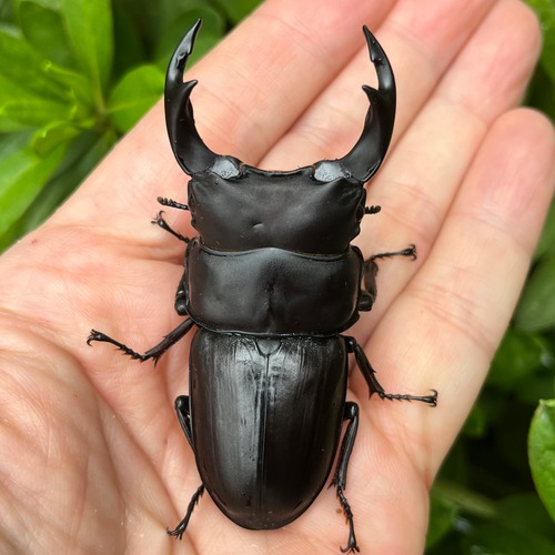 香川県は、四国のオオクワガタのメッカとして有名ですが、多くは綾歌郡産でした。この個体は、丸亀市産ということもあり、産地のバリエーションを拡大することになり、期待している血統となります。種親♂は、2020年2月25日に材割で幼虫採集され、8月6日に羽化が確認された♂65mmと7月31日に羽化が確認された♀43mmから生まれたF1個体♂72mmとなります。種親♀38mmは、2023年11月19日に材割で成虫採集された野生個体となります。